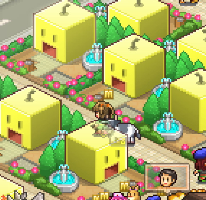 悩んでいても仕方ない、まずは住居を建ててみようかな。おや、お金のない若者がやってきたぞ。彼に仕事を与えてみると、お金を稼いで店で使ってくれるようになった。店のおじいちゃんも喜んでいるぞ!次はどんな店を建てようか。